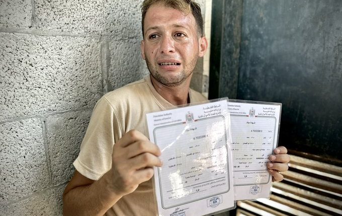 خاص/وكالة الصحافة اليمنية//   في غزة فقط، تسبق شهادة الوفاة، شهادة الميلاد، وتتحول فرحة الأب إلى حزن هستيري ودموع وفقدان وعي. قبل ثلاثة أيام، رُزق الشاب الفلسطيني محمد أبو القمصان بتوأمين، بعد عملية قيصرية صعبة لزوجته الدكتورة جمانة فريد، حمل الشاب فرحته بمولوديه البكرين، اليوم الثلاثاء، وذهب لاستلام شهادتي الميلاد الخاصة بـ أيسل وأيسر، وعندما […]