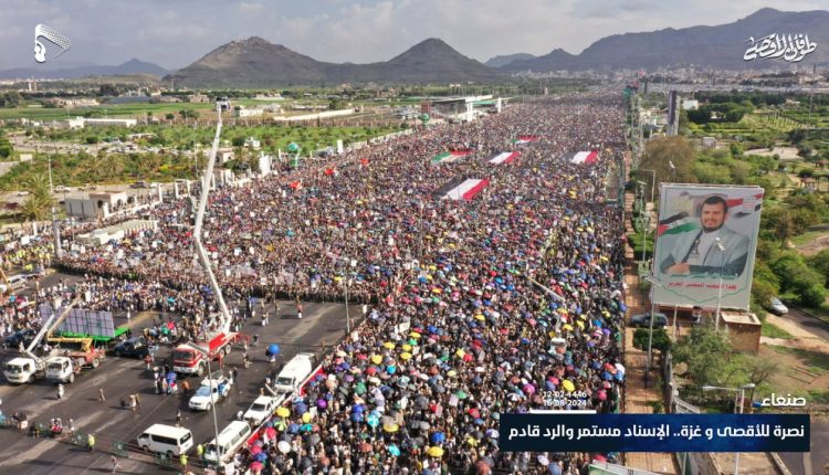 شاهد| برغم الأمطار الغزيرة.. طوفان بشري وحشود مليونية تغطي ميدان السبعين بالعاصمة صنعاء في مسيرة “نصرة للأقصى وغزة.. الإسناد مستمر والرد قادم” (صور جوية مذهلة)