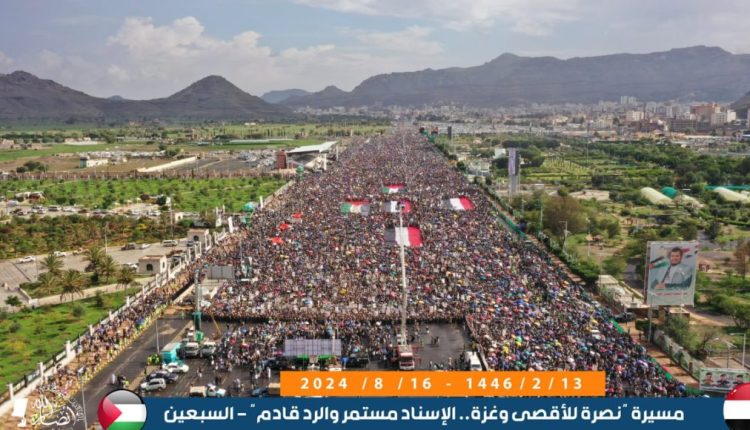 مسيرة مليونية بالعاصمة صنعاء تفوض السيد القائد لاتخاذ كل قرارات التصعيد لردع العدو الصهيوني