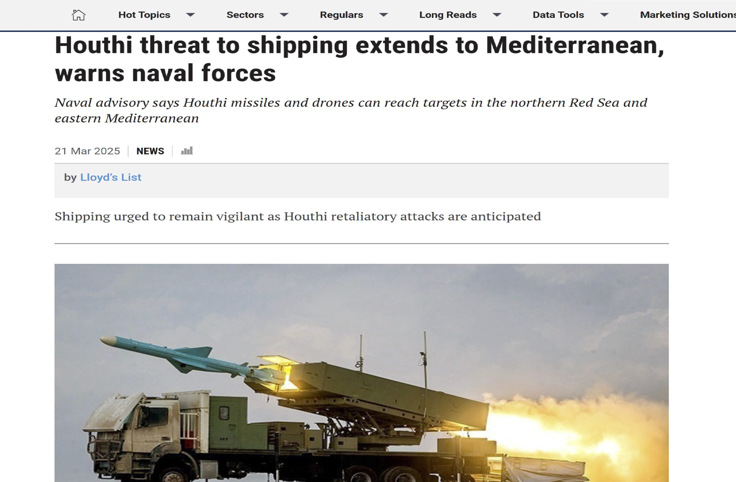 موقع “لويدز ليست” البريطاني: الصواريخ اليمنية باتت قادرة على الوصول إلى البحر الأبيض المتوسط