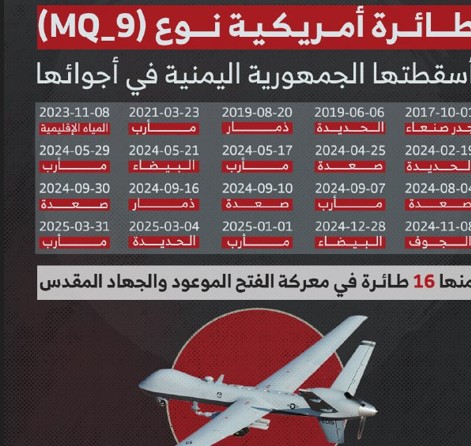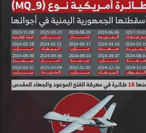 عشرين طائرة أمريكية من نوع (MQ-9) أسقطها الجيش اليمني