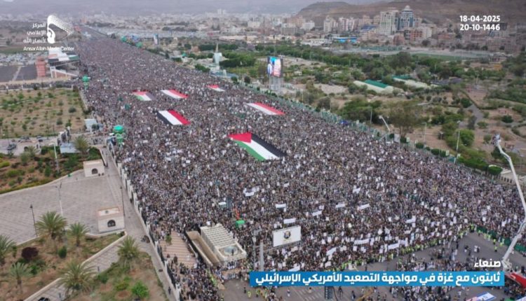 حشود مليونية وطوفان بشري في ميدان السبعين بالعاصمة صنعاء تأكيدا على الثبات مع غزة ومواجهة العدوان الأمريكي الإسرائيلي (تفاصيل + صور)