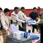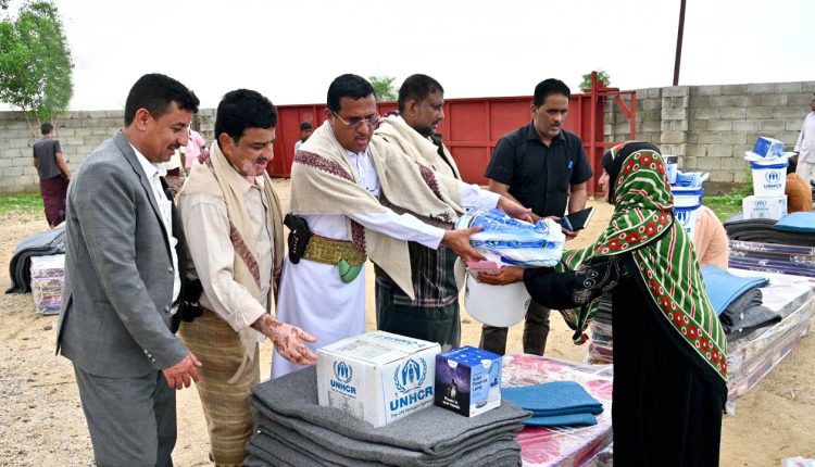 فرع الشؤون الإنسانية بحجة يدشن توزيع مساعدات إيوائية للمتضررين من السيول في عبس ومستبأ