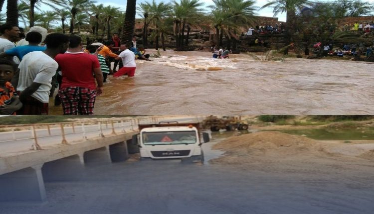 وسط تحذيرات من استمرار هطول الأمطار .. أهالي وادي المسيلة بالمهرة محاصرون بالسيول