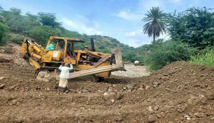 وحدة التدخلات الطارئة بتعز تواصل تأهيل الطرق المتضررة من السيول بمديرية مقبنة