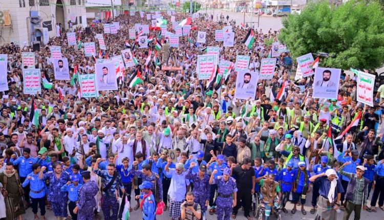 57 مسيرة بالحديدة تجدد الدعم والتضامن مع الشعب الفلسطيني