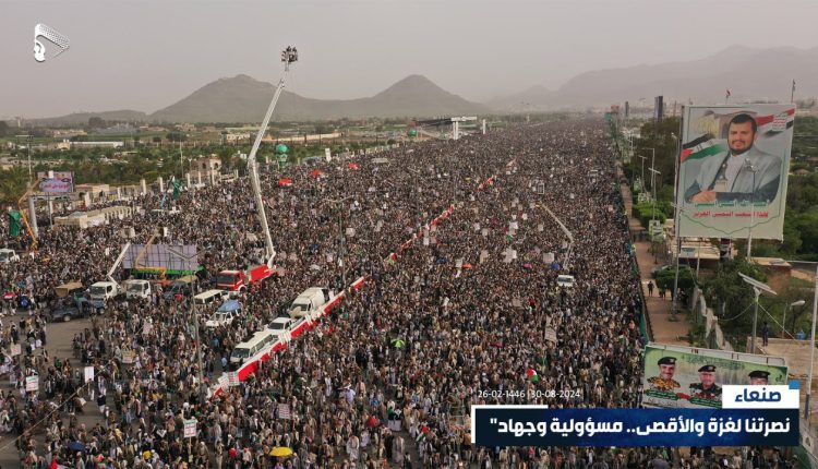 خروج مليوني وطوفان بشري بالعاصمة صنعاء تأكيداً على الاستمرار في نصرة غزة والتضامن مع الشعب الفلسطيني (تفاصيل+ صور) Share أغسطس 30, 2024 خروج مليوني وطوفان بشري بالعاصمة صنعاء تأكيداً على الاستمرار في نصرة غزة والتضامن مع الشعب الفلسطيني (تفاصيل+ صور) الذهاب إلى المصدر Share FacebookTwitterGoogle+ReddItWhatsAppPinterestEmail