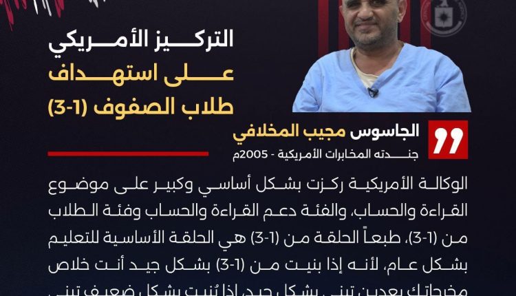 خلية التجسس تكشف الاستهداف الأمريكي لطلاب الصفوف الأولى “1 – 3”