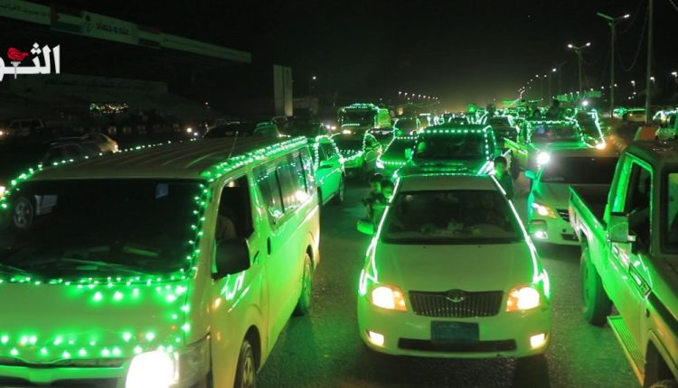 العاصمة صنعاء تشهد مسيرة ضوئية للسيارات ابتهاجاً بذكرى المولد النبوي