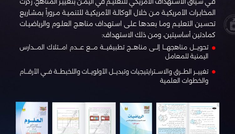 يمانيون – متابعات كشفت اعترافات خلية التجسس الأمريكية الإسرائيلية التي بثتها الأجهزة الأمنية مساء اليوم عن المناهج التي تم تغييرها لاستهداف قطاع التعليم في الجمهورية اليمنية. واعتبر الجاسوس محمد المخلافي، جندته المخابرات الأمريكية 1990م، مشروع الـ CLB أحد المشاريع الأمريكية الذي تنفذه منظمة كرييتف بتمويل من الوكالة الأمريكية للتنمية لغرض استهداف التعليم باليمن، مبيناً أن […]