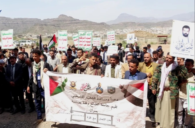 جامعة الضالع تنظم مسيرة طلابية حاشدة تضامناً مع غزة