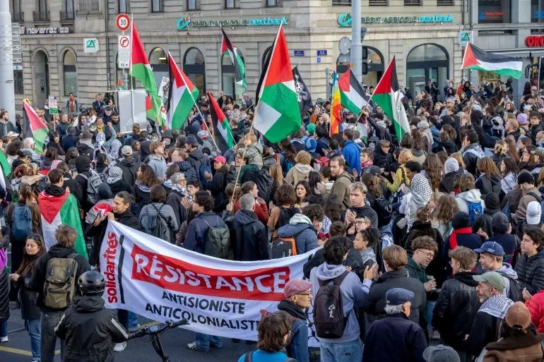 الشرطة السويسرية تستخدم الغاز وخراطيم المياه لتفريق مظاهرة داعمة لغزة