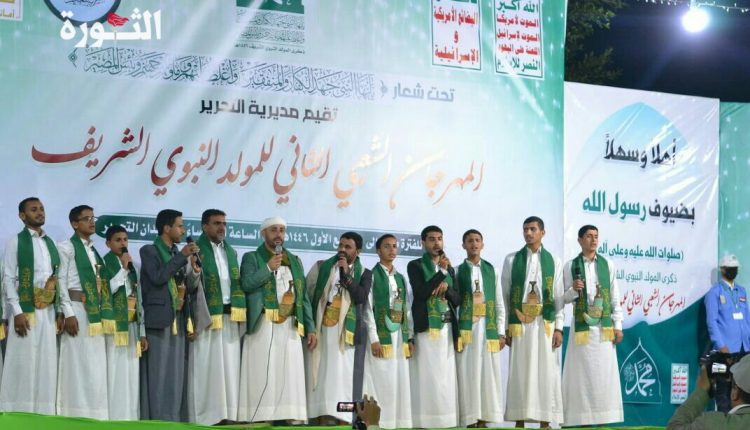 الثورة نت/.. حفل المهرجان الشعبي الثاني للمولد النبوي الشريف الذي تنظمه مديرية التحرير بأمانة العاصمة، اليوم، بمشاركة متعددة أحيت أمسية جماهيرية احتفاءً بقدوم ذكرى المولد. وتعددت فقرات المهرجان الذي تنظمه مديرية التحرير بدعم الجمعية الخيرية لتعليم القرآن الكريم وعلومه خلال الفترة من 1 وحتى 10 ربيع أول الجاري، مركزة على ترسيخ حب رسول الله […]