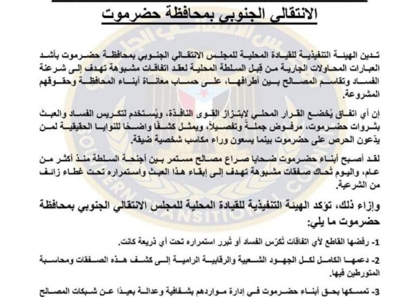 الانتقالي يشن هجوما عنيفا على سلطات التحالف في حضرموت Share أكتوبر 5, 2025 عدن | وكالة الصحافة اليمنية | الذهاب إلى المصدر Share FacebookTwitterGoogle+ReddItWhatsAppPinterestEmail