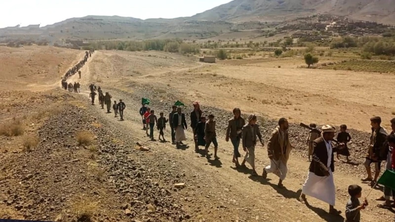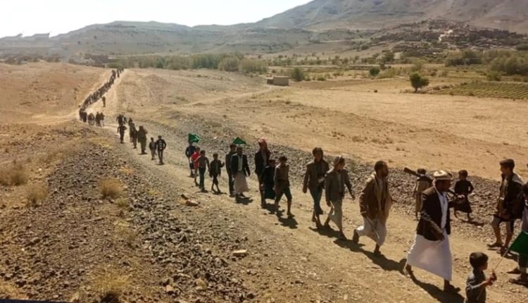 مسيرات راجلة لقوات التعبئة في عزل مديرية الحصن بمحافظة صنعاء