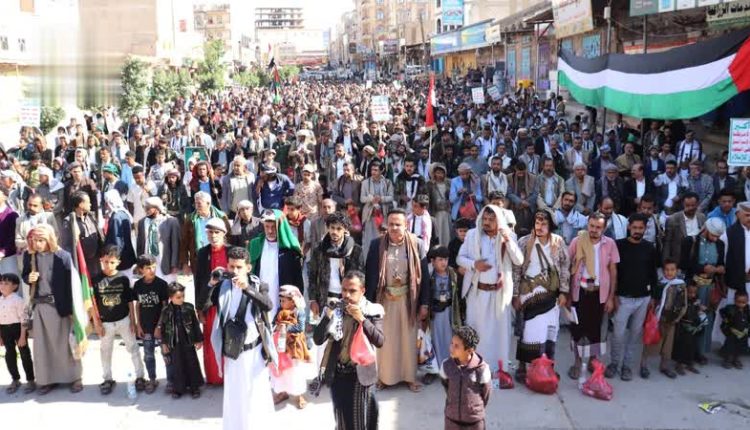 مسيرات حاشدة في الضالع تحت شعار “طوفان الأقصى.. عامان من الجهاد والتضحية حتى النصر”
