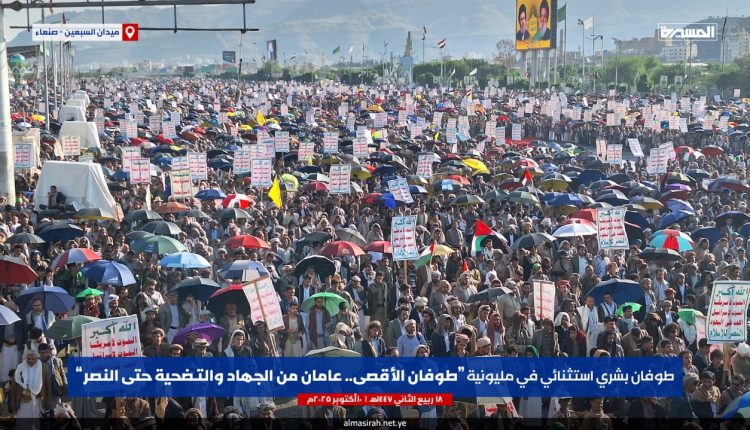 الحشود المليونية تهدر في ميدان السبعين: عامان من “طوفان الأقصى”.. جهاد وتضحية حتى النصر