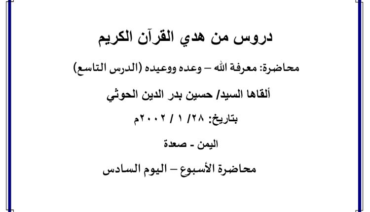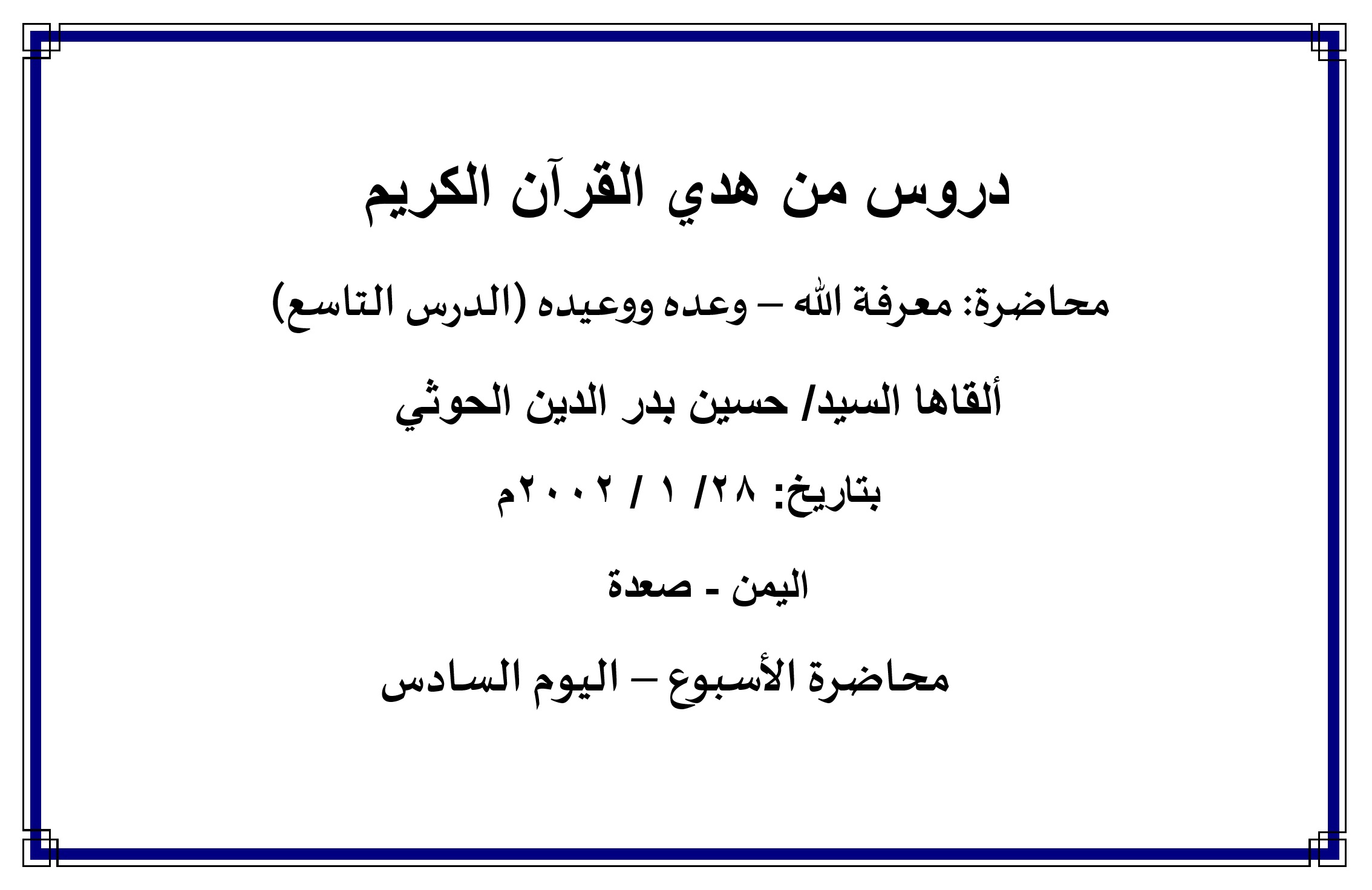 محاضرة الأسبوع – معرفة الله- وعده ووعيده- الدرس التاسع (اليوم السادس)