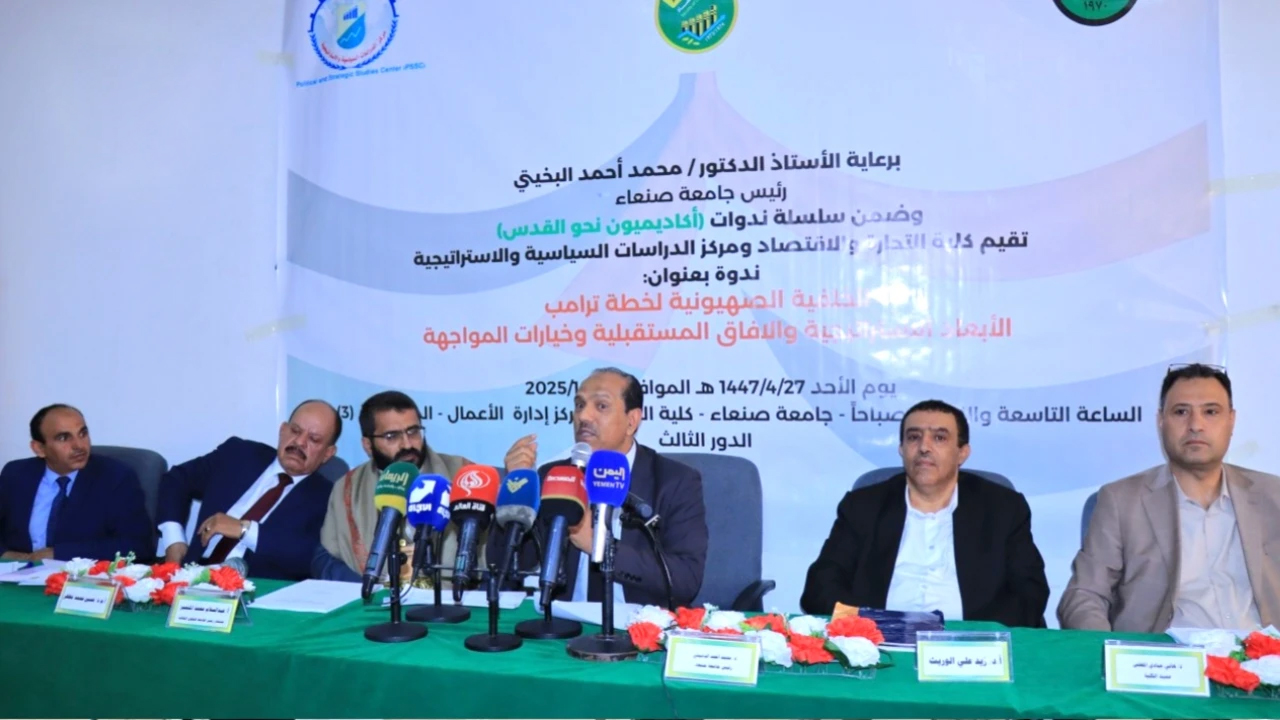 جامعة صنعاء تدشن سلسلة ندوات “أكاديميون نحو القدس” وتكشف الخلفية الصهيونية لخطة ترامب