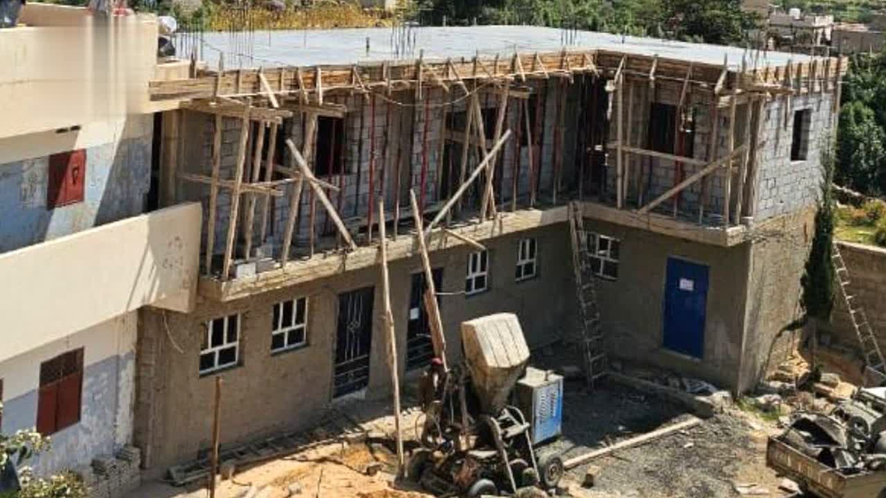 استكمال أعمال الصب الخرساني بمدرسة الشهيد الغماري في المحويت