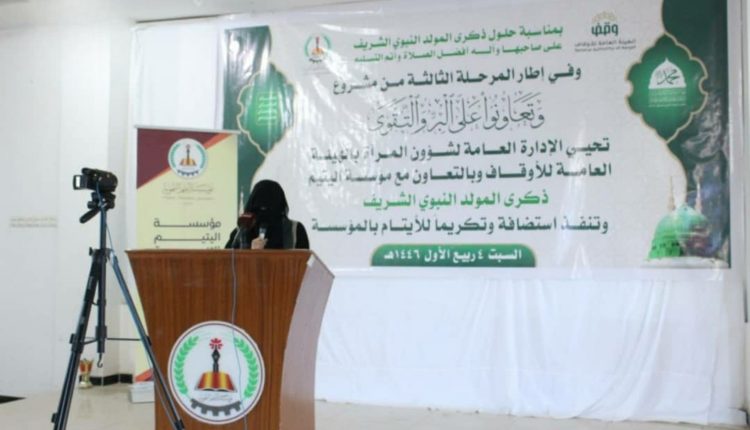 يمانيون../ دشنت الإدارة العامة لشؤون المرأة بالهيئة العامة للأوقاف، اليوم بمؤسسة اليتيم التنموية، المرحلة الثالثة من مشروع “وتعاونوا على البر والتقوى”، الذي تنفذه الهيئة للعام 1446هـ بمبلغ أربعة مليارات ريال. يستهدف المشروع الذي يأتي تزامنا مع الاحتفال بذكرى المولد النبوي الشريف على صاحبها وآله افضل الصلاة والتسليم دعم ورعاية دُور الأيتام، وتقديم مساعدات لمرضى السرطان […]