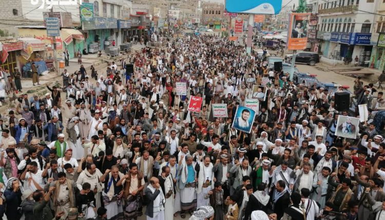 مسيرة حاشدة بالبيضاء انتصاراً لغزة ودعماً للشعب الفلسطيني