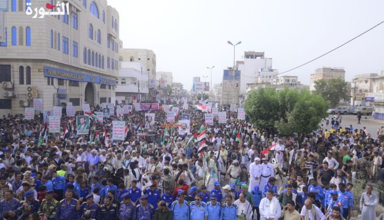 مسيرات في 27 ساحة بالحديدة انتصارا لغزة ومضياً في المرحلة الخامسة من التصعيد