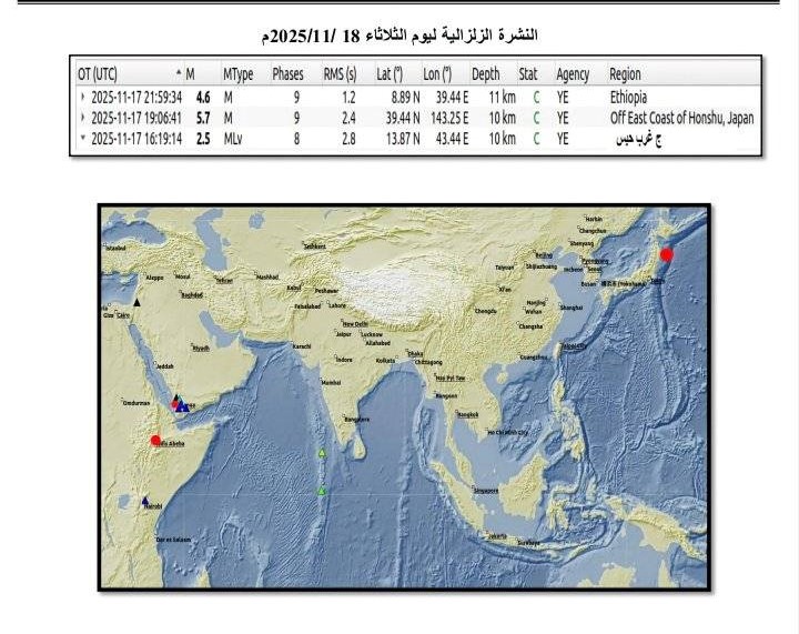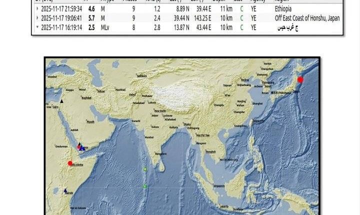 هزة أرضية جديدة تضرب جنوب الحديدة Share نوفمبر 18, 2025 ذمار | وكالة الصحافة اليمنية | الذهاب إلى المصدر Share FacebookTwitterGoogle+ReddItWhatsAppPinterestEmail