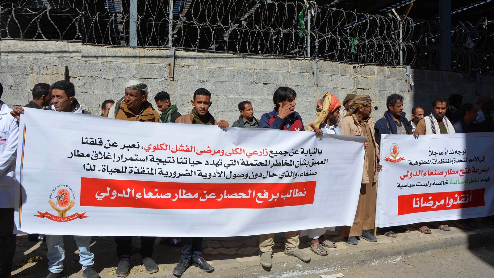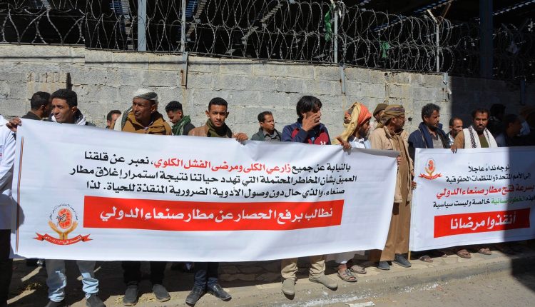 وقفة أمام مقر الأمم المتحدة بصنعاء تطالب بفتح مطار صنعاء الدولي