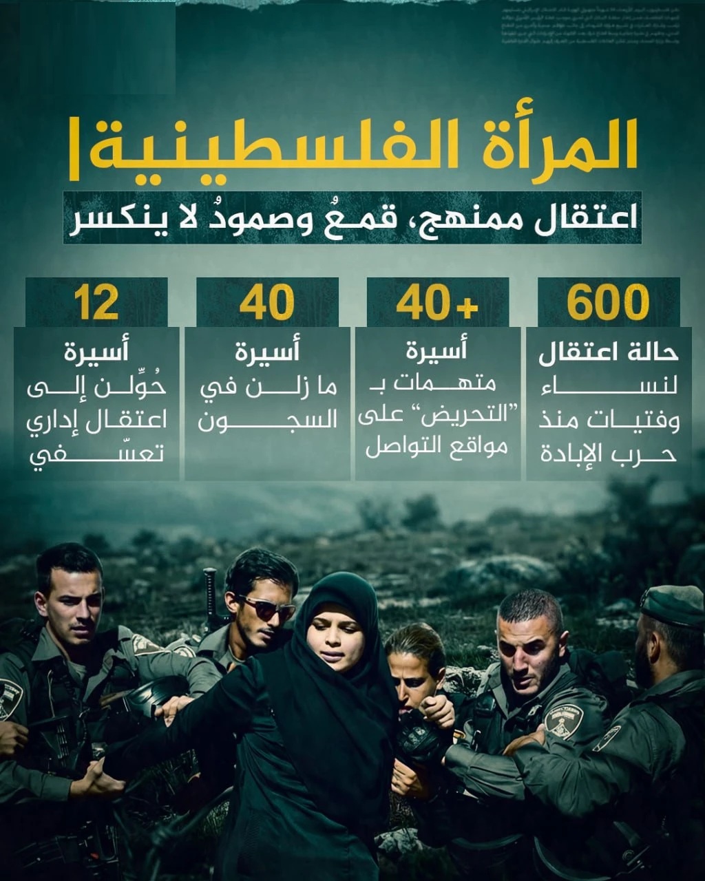 مُعطى : 600 حالة اعتقال لنساء وفتيات فلسطينيات منذ 7 اكتوبر 2023