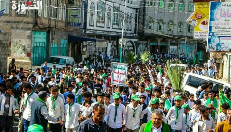 القطاع التربوي في مديريات إب ينظم مسيرات طلابية ابتهاجاً بذكرى المولد النبوي