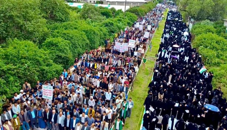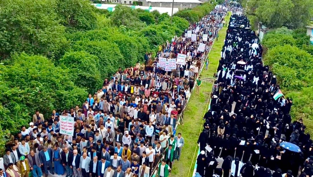 مسيرات طلابية وأكاديمية كبرى في إب تنديداً بجريمة الإساءة الأمريكية للقرآن القريم