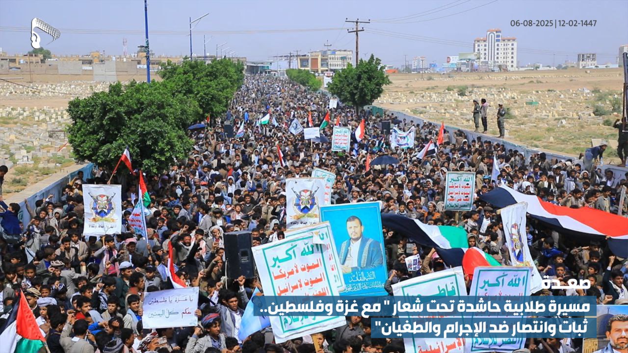 يمني برس || صعدة: شهدت محافظة صعدة اليوم الأربعاء 27 جمادى الآخر خروج ثلاث مسيرات طلابية حاشدة في مدن صعدة، النضير، وشعارة، وذلك انتصاراً للقرآن الكريم وتنديداً بالإساءة الأمريكية المتكررة للمقدسات الإسلامية. ودعا بيان مسيرات الطلاب في صعدة ورازح إلى توسيع دائرة السخط في أوساط شعوب الأمة الإسلامية ضد الصهيونية، رداً على هذه الاعتداءات. وأكد […]