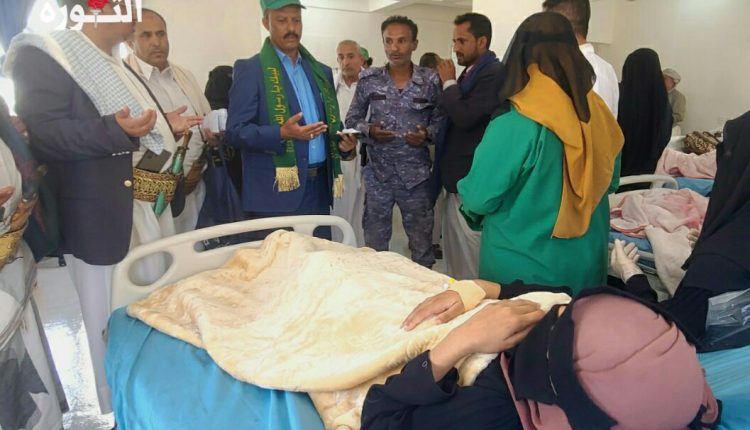 الرميمة والبريهي والنعمي يتفقدوا أوضاع الجريحات من طالبات مدرسة عائشة في الجند بتعز
