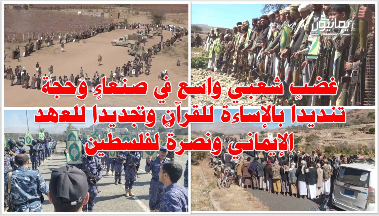 غضب شعبي واسع في صنعاء وحجة تنديدًا بالإساءة للقرآن وتجديدًا للعهد الإيماني ونصرةً لفلسطين