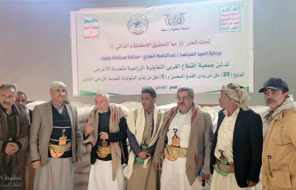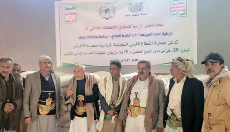 يمني برس | دشنت جمعية القطاع الغربي التعاونية الزراعية متعددة الاغراض بمحافظة صنعاء توزيع 20 طنا من بذور القمح المحسن وخمسة اطنان من بذور البقوليات للموسم الشتوي الحالي على مزارعي مديريات القطاع، في اطار دعم الانتاج الزراعي وتعزيز الامن الغذائي. وخلال التدشين اكد رئيس الفريق التنموي بالمحافظة عبد الله المروني ومسؤولو القطاع الزراعي اهمية تشجيع […]