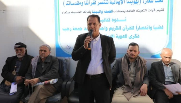 الثورة نت /.. نظمت التعبئة العامة بمكتب الصحة والبيئة في أمانة العاصمة، اليوم فعالية خطابية، بعيد جمعة رجب ذكرى الهوية الإيمانية تحت شعار “بهويتنا الإيمانية ننتصر لقرآننا ومقدساتنا”. وفي الفعالية تطرق مدير مكتب الصحة بالأمانة الدكتور مطهر المروني، إلى دلالات إحياء هذه المناسبة الدينية المباركة في ترسيخ الهوية الإيمانية لأبناء الشعب اليمني، والتمسك بدين الله […]