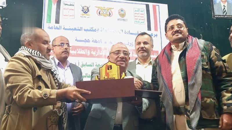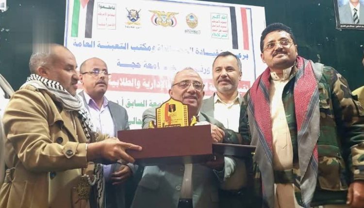 الثورة نت /.. كرّمت السلطة المحلية والتعبئة وجامعة حجة والكليات والمراكز العلمية اليوم، رئيس جامعة حجة السابق الدكتور محمد الخالد، نظير جهوده في تطوير التعليم الجامعي. وخلال التكريم، ثمن وكيل المحافظة أحمد الأخفش، جهود الدكتور الخالد في سبيل الإرتقاء بالعملية التعليمية والأكاديمية، مؤكدًا حرص السلطة المحلية والتعبئة في المحافظة على مساندة جهود رئيس الجامعة الجديد […]