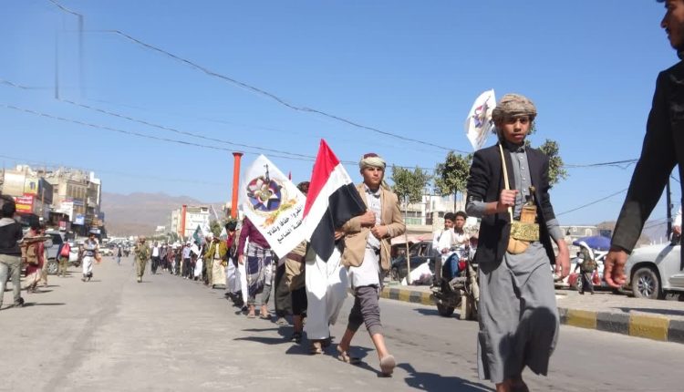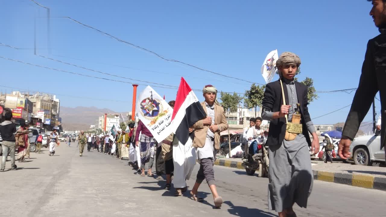 مسير ووقفة لطلاب مدارس دمت في الضالع تنديدا بالإساءة الأمريكية للقرآن الكريم
