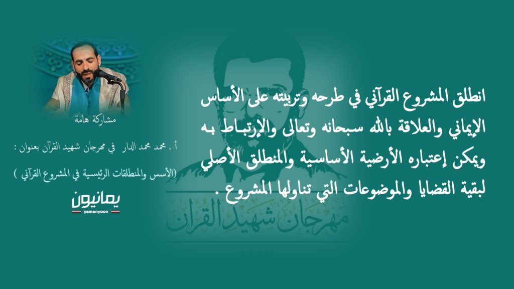 قدّم الباحث أ. محمد محمد الدار ورقة بحثية فكرية مهمة ضمن فعاليات مهرجان الشهيد القائد رضوان الله عليه، حملت عنوان ((الأسس والمنطلقات الرئيسية في المشروع القرآني))، سلطت الضوء على المرتكزات الفكرية والمنهجية التي قام عليها المشروع القرآني الذي أسسه الشهيد القائد حسين بدر الدين الحوثي رضوان الله عليه، بوصفه مشروع تغيير وإصلاح ونهضة حضارية شاملة، […]