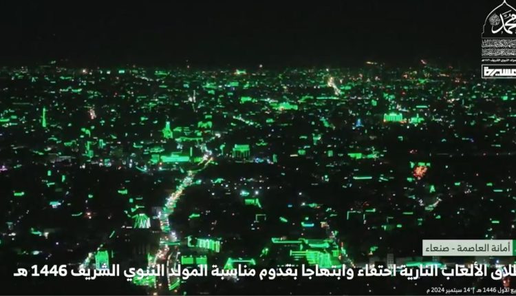 🟢 مشاهد لإطلاق الألعاب النارية احتفاء و ابتهاجا بقدوم مناسبة المولد النبوي الشريف في العاصمة صنعاء 1446هـ#المولد_النبوي_الشريف#شاهد_المسيرة pic.twitter.com/PRbaiadR7d — شاهد المسيرة (@ShahidAlmasirah) September 14, 2024