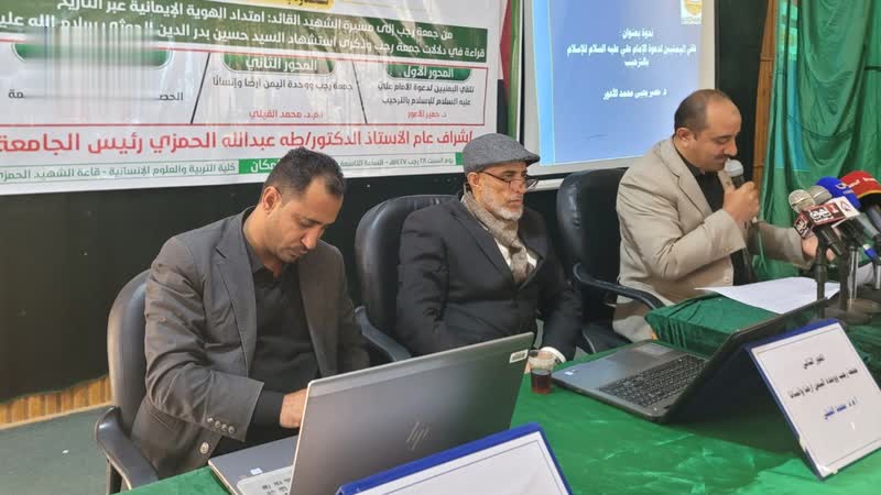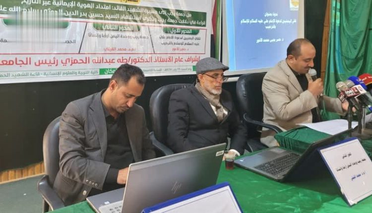 جامعة حجة تنظم ندوة بعنوان “من جمعة رجب إلى مسيرة الشهيد القائد امتداد الهوية الإيمانية”
