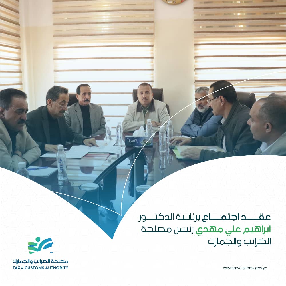 صنعاء سيتي // عقد اليوم اجتماع برئاسة الدكتور ابراهيم على مهدي رئيس مصلحة الضرائب والجمارك و بحضور وكيل المصلحة عبد الرحمن الجنيد والوكلاء المساعدين لقطاعات التحصيل و التخطيط والمعلومات والشؤون المالية والمدراء المعنيين. في بداية الاجتماع رحب الدكتور رئيس المصلحة بالحاضرين معلنا تدشين العام الضريبي 2026م مؤكداً على ضرورة الاهتمام بانجاز الأعمال كلاً فيما يخصه […]