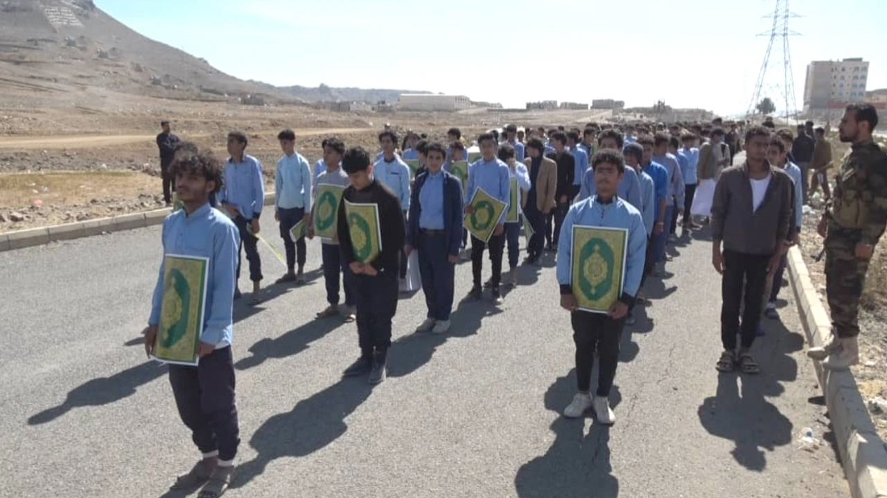 بشعار “شهيد القرآن”.. عرض طلابي مهيب في سنحان وفاءً لتضحيات السيد حسين بدر الدين الحوثي