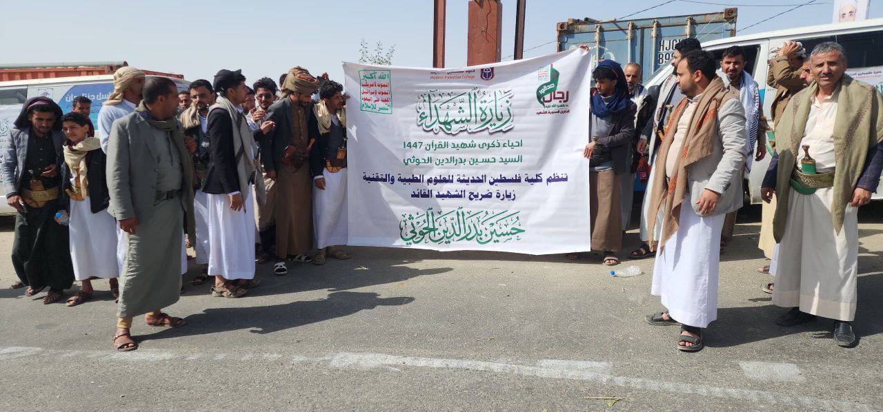 وفد من كلية فلسطين الحديثة يزور ضريح شهيد القرآن ومعالم الجهاد وروضات الشهداء في صعدة