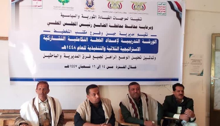 الثورة نت /.. بدأت بمديرية جبن في محافظة الضالع، اليوم، دورة تدريبية خاصة بإعداد الخطة التنموية التكاملية التشاركية الإستراتيجية للأعوام 1448- 1450هـ، والتنفيذية للعام 1448هـ. ‏ تهدف الدورة التي ينظمها قطاع التخطيط بالمحافظة في خمسة أيام، إلى إكساب 20 مشاركا من مدراء المكاتب التنفيذية و12 باحثا من منتسبي التعبئة العامة، وجمعية جبن التعاونية، خبرات ومعارف […]