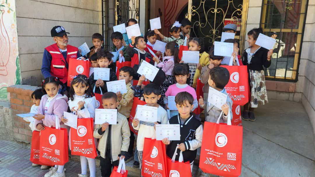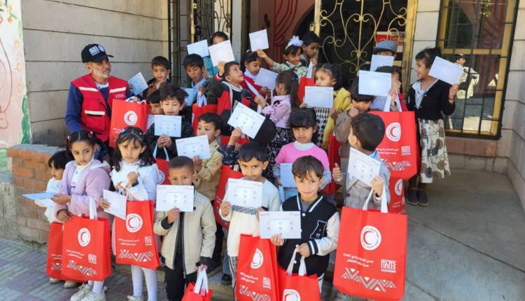 جمعية الهلال الأحمر اليمني فرع البيضاء تدشن توزيع الهدية الغذائية لطلاب وطالبات مدارس مدينتي البيضاء و رداع