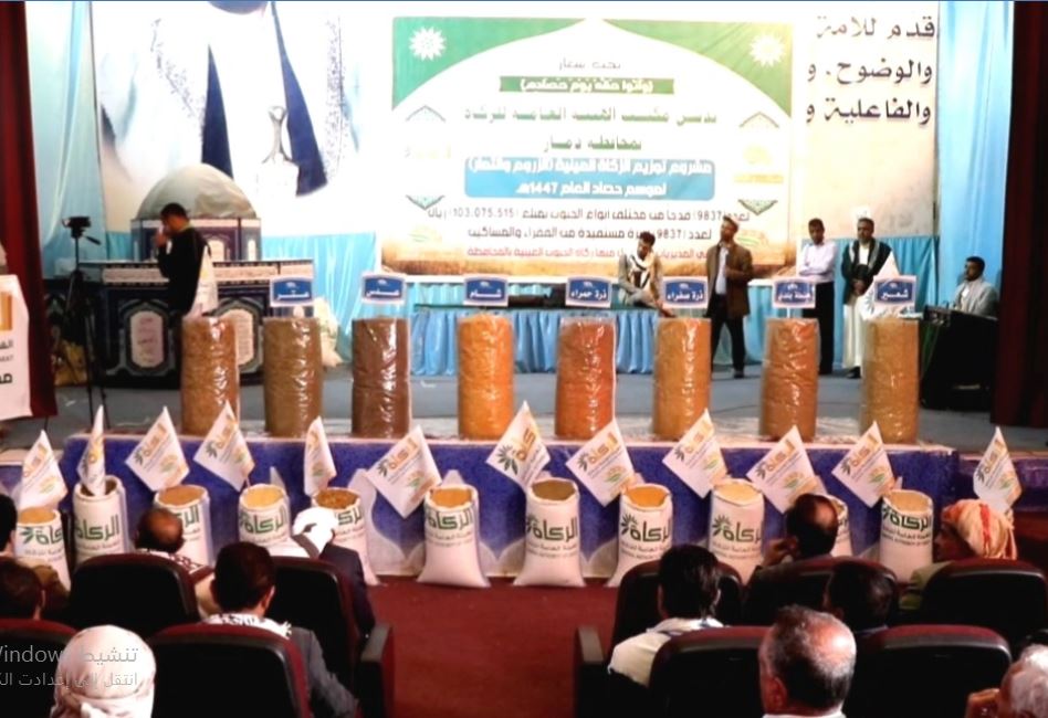 الزكاة بذمار تدشن توزيع الحبوب على 9837 أسرة فقيرة