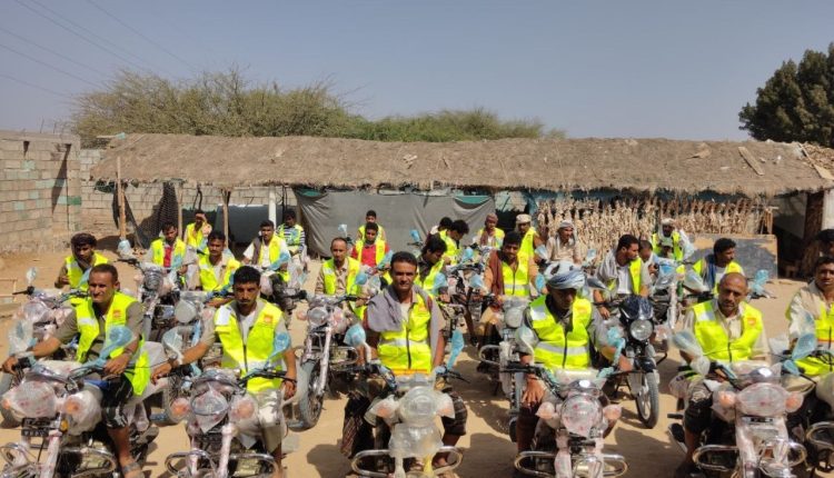 توزيع 33 دراجة نارية للنازحين في الزهرة بالحديدة
