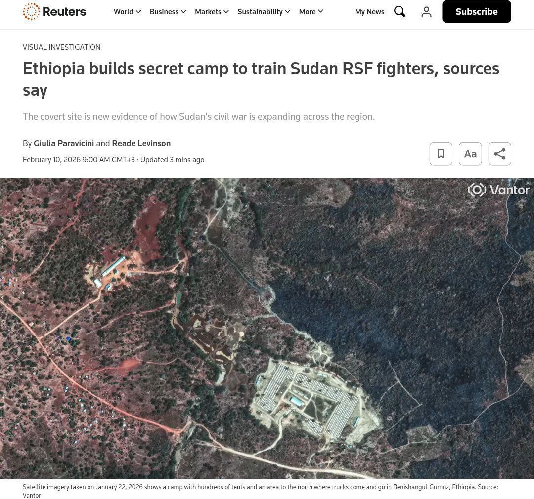 فضيحة “بني شنقول” الأثيوبي.. وثائق مسربة تكشف تفاصيل أكبر قاعدة تدريب لقوات الدعم السريع بتمويل إماراتي Share فبراير 10, 2026 أديس أبابا | وكالة الصحافة اليمنية الذهاب إلى المصدر Share FacebookTwitterGoogle+ReddItWhatsAppPinterestEmail